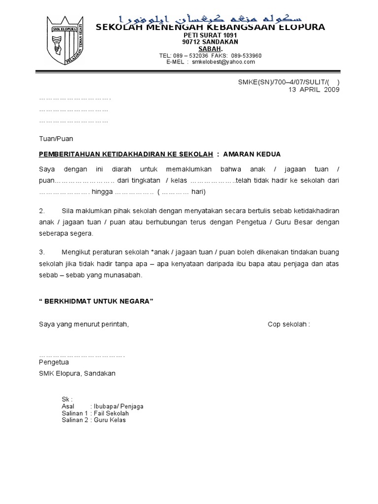 Contoh surat amaran ponteng sekolah rendah picture posted ang uploaded by admin that preserved inside our collection.